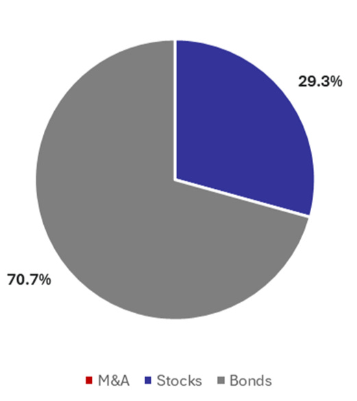 Stocks represented 29.3% of total turnover. O’z-Tong Hong kompani (UTHK) led with a 17.3% share, registering 23bln UZS in trading volume. Inson (INSN) recorded 7.4bln UZS and Yuggazstroy (YGSY) nearly 2bln UZS in trading volume, accounting for 5.6% and 1.5% of total turnover, respectively. O’zRTXB (URTS) posted the highest number of deals for the period at 1,454, totaling 1.9bln UZS in trading volume. Hamkorbank (HMKB) followed with 916 deals, generating 1.3bln UZS in trading volume. O’zbekiston sanoat-qurilish banki (SQBN) recorded 931.1mln UZS, Xorazmsuvqurilish (XOSQ) 699.7mln UZS, and Maxsuselektrtarmoqqurilish (METQ) 541.1mln UZS, each with less than 1% share of total turnover.